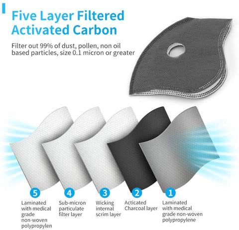 5 Replacement Filters for PM2.5 Workout Exercise Mask