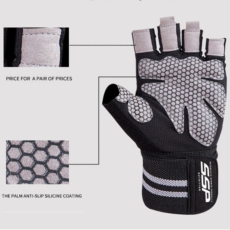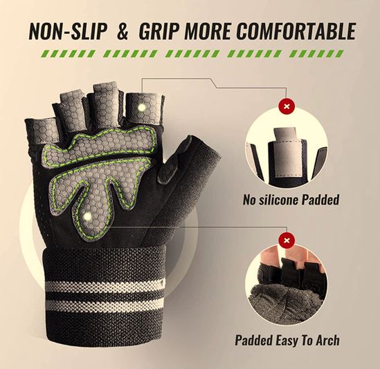 Anti Slip Pro Wrist Wrap Weightlifting Gloves with Vented Cushioned Leather Palm