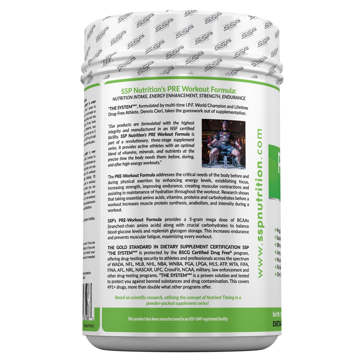 The PRE-Workout formula provides safe and natural supplementation to hydrate, enhance energy levels and prevent burning coveted muscle during workouts, games and intense competitions. The PRE-Workout formula keeps the athlete hydrated to maintain lower body temperatures thus postponing fatigue and resulting in maximum workout periods with greater intensity. The PRE-Workout formula is loaded with a 5 gram mega-dose of BCAAs (Branched-chain amino acids). Research has also shown that taking essential amino acids before a workout dramatically increases muscle protein synthesis and anabolism; increasing energy levels and the intensity of your workouts.
